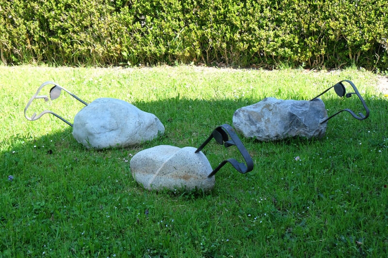 Mit SWISS DESIGN sind die ersten lustigen Geschenkschafe auf dem Markt. Mit der Suche nach geeigneten Natursteinen beginnt die Arbeit. Die Steine werden mit speziellen Werkzeugen angebohrt, nach meinem Design gelaserte Metallköpfe angepasst und im Stein robust verankert. Schafe für die Gartengestaltung finden Sie unter GESTALTET!